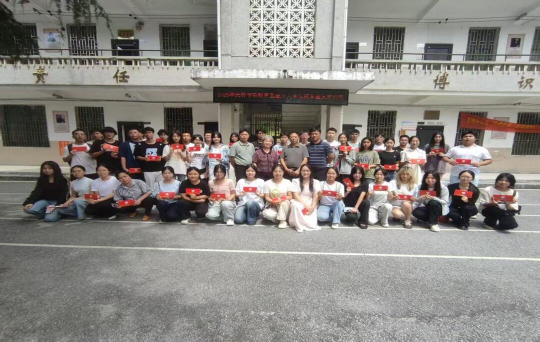 华声在线8月25日讯(通讯员 胡喜平)8月23日上午,湖南省桂阳县光明专项教育基金办2025年大学生奖学金发放仪式在光明中心校举行。桂阳县教育基金会理事长陈瑞琳、副理事长周泽飞,莲塘镇副镇长李异军,光明中心校党支部书记、校长刘胜德,光明专项教育基金办公室主任付光仁,53名获奖学生及家长代表参加了奖学金发放仪式。