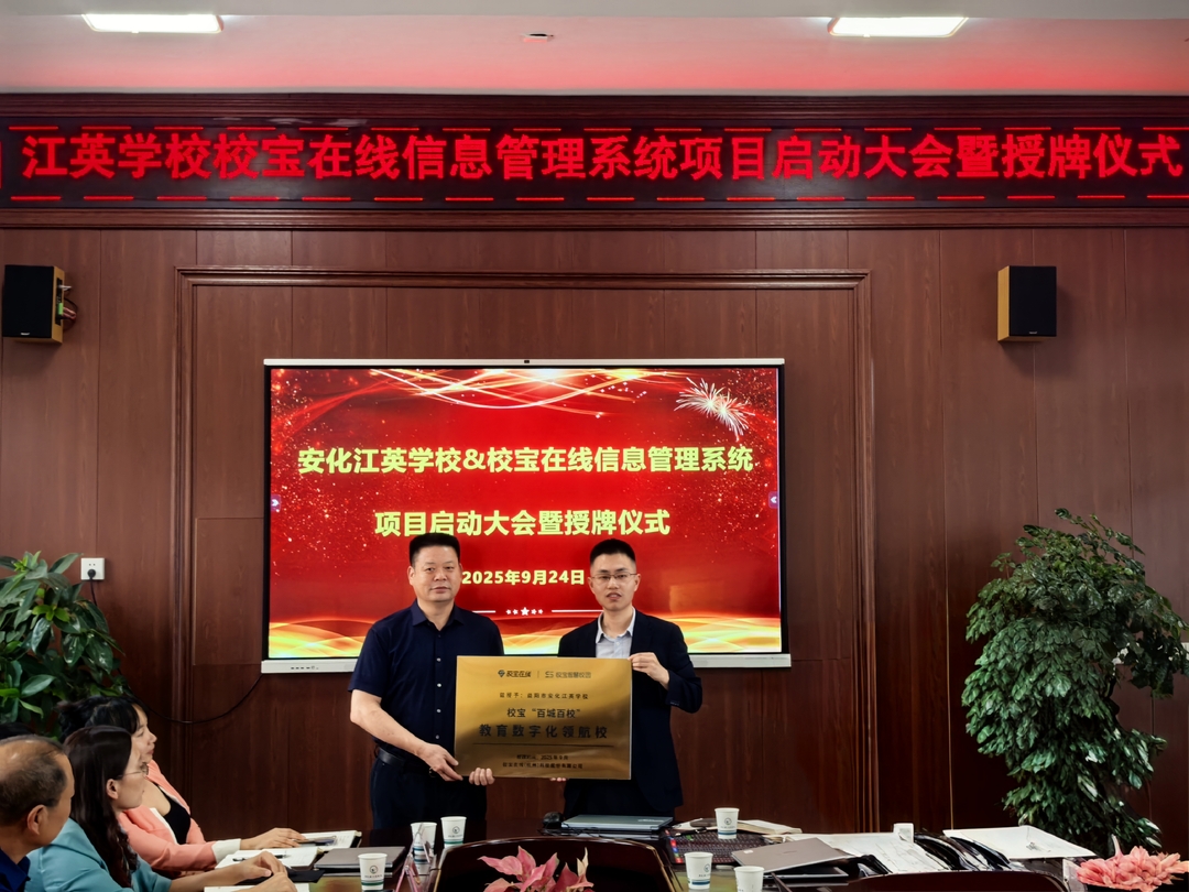 华声在线9月25日讯(通讯员 李雨宸)9月24日,位于益阳市安化县的江英学校与校宝在线正式启动智慧校园信息管理系统合作项目,并获授“教育数字化领航校”称号,标志着该校教育数字化转型进入新阶段。
