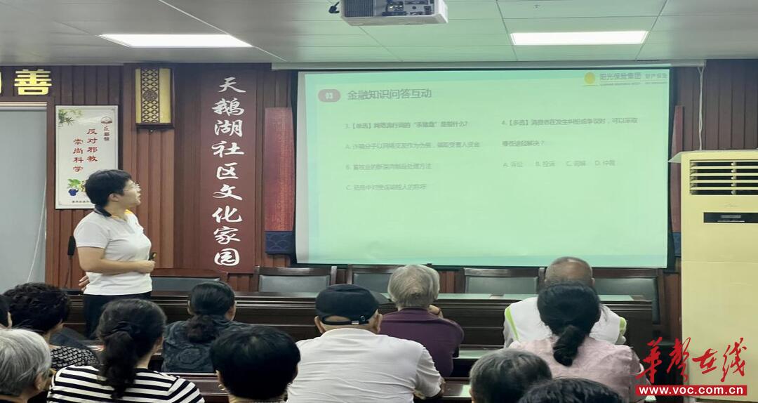在湖南长沙的老年活动中心里,大字版宣传册搭配方言讲解,把“以房养老、保健品诈骗”的套路拆解得明明白白,老人们接过实用小礼品,笑着表示这课比听戏还过瘾;在株洲的社区广场,阳光财险的工作人员支起展台,彩色折页上“陌生链接不点、高额回报不信”的提示格外醒目;湘潭的早市与夜市中,宣传小队穿梭在摊位间,用“拉家常”的方式提醒摊主:收到订单异常短信别慌,先给官方打个电话核实。