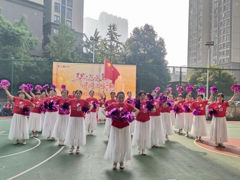 9月28日上午,“华流之上,团圆正当潮”大型国庆中秋文艺汇演在小区篮球场上演,将节日气氛推向高潮。汇演节目均由业主们自编自演,灵动的舞蹈、动听的歌曲、悠扬的器乐演奏与刚柔并济的太极表演轮番登场,赢得了现场观众的阵阵掌声。
