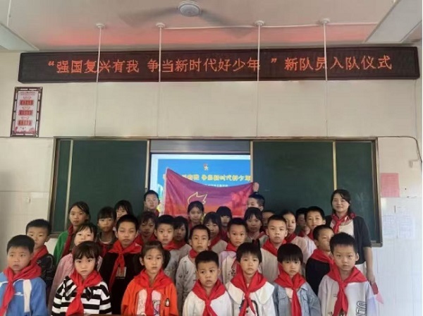 隆回县山界九年义务制学校举行新少先队员入队仪式
