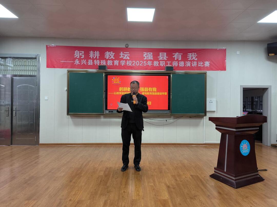 在“教育家精神”的引领下,永兴县特殊教育学校积极响应“教育强县”的号召,通过师德演讲比赛这一形式,鼓励教师们结合特教实践,分享用爱心与耐心守护残障学生成长的感人故事。活动旨在彰显特教工作者的责任担当,激发全体教师的职业荣誉感和社会责任感。
