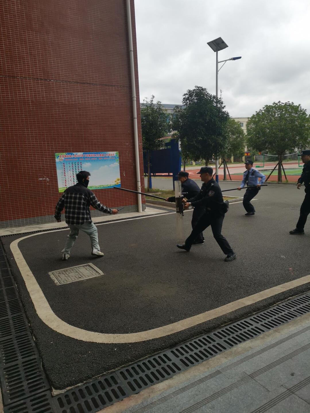 上午10时20分,演练正式开始。“暴徒”(由学校老师扮演)持械试图闯入校园,校门口安保人员发现后,立即启动应急响应,按下一键报警系统,迅速使用防暴器械进行拦截,向学校应急指挥中心报告情况。指挥中心接到报告后,第一时间下达指令,校园广播立即响起紧急警报,各班级的班主任迅速组织学生关闭教室门窗、用桌椅抵住门口、躲藏在安全角落,同时保持安静,避免引起“暴徒”注意。