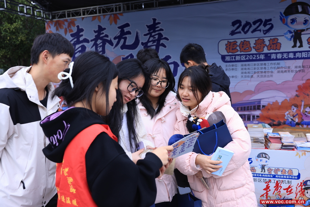华声在线10月23日讯(通讯员 唐涵青 扶苏 谢旭)10月22日上午,一场以“青春无毒 向阳而生”为主题的禁毒宣传活动,在湖南商务职业技术学院孔子广场热烈展开。本次活动由湖南湘江新区禁毒工作机制办公室主办,通过一系列沉浸式互动体验,为千余名学子带来了一堂生动而深刻的“禁毒公开课”,有力筑牢了校园青春防线。