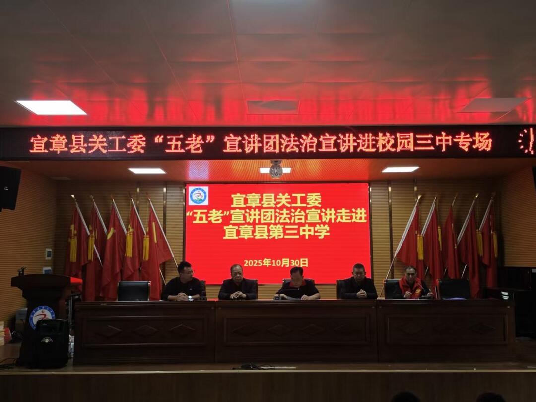 华声在线10月30日讯(通讯员 李良田)为切实加强校园法治建设,提高学生法治意识,今日下午,宜章县关工委“五老”法治宣讲团走进宜章县第三中学开展法治讲座。