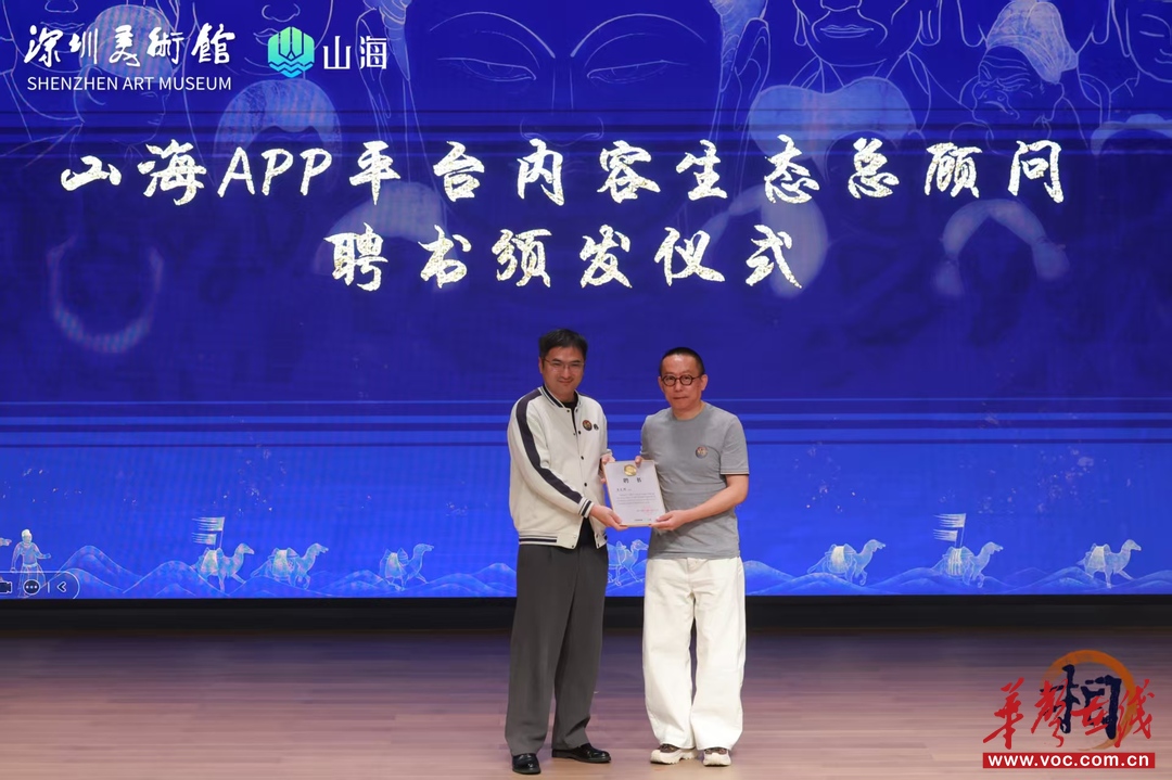 活动现场,芒果数智总经理方菲还向李东珅颁发聘书,聘请其担任山海APP平台内容生态总顾问,并赠送“山海创世徽章”数字文创。