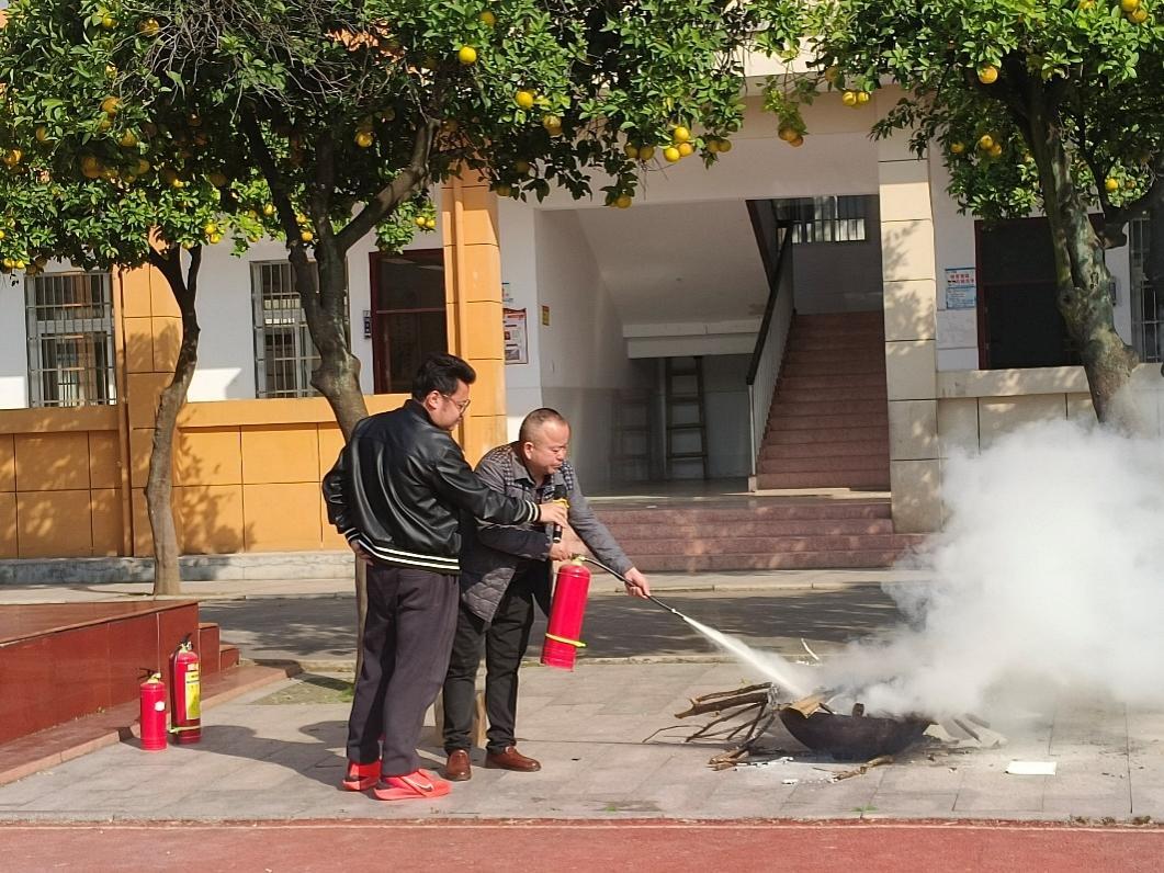 在认真观摩后,来自各年级的学生代表和食堂、后勤职工代表纷纷主动上前,在专业指导下进行了灭火器实操演练。面对模拟火源,他们沉着冷静,操作规范,成功将火焰扑灭,赢得了现场的阵阵掌声。
