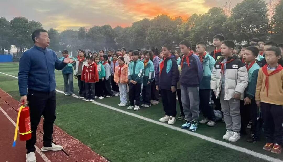 随着急促的消防警报声突然响起,演练正式开始。各宿舍学生在班主任和宿管老师地引导下,捂住口鼻,弯腰快速有序地按照预定疏散路线向指定安全区域撤离。过程中,同学们不推挤、不慌张,听从指挥,动作规范。短短3分钟内,所有参与人员均安全撤离至操场指定区域,各班班主任立即清点人数,并向演练总指挥汇报,确保无一人遗漏。疏散结束后,该校安全副校长桑子国重点演示了干粉灭火器“提、拔、握、压”的正确使用方法,进一步巩固演练效果。