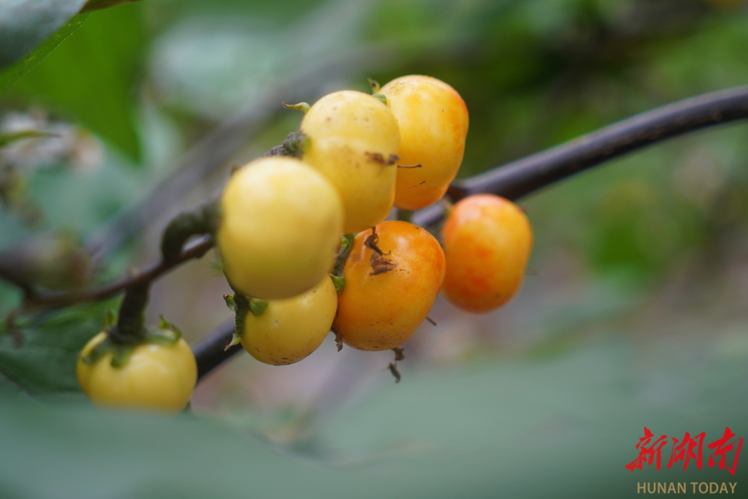 汨罗市罗江镇的蔬菜大棚里,长得像西红柿一样的茄子,汪端华负责对其进行性状观察。