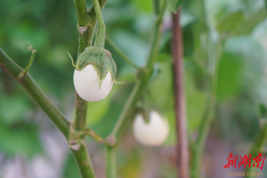 汨罗市罗江镇的蔬菜大棚里,长得像鸡蛋一样的茄子。本文图片均为胡盼盼 范思璇 摄