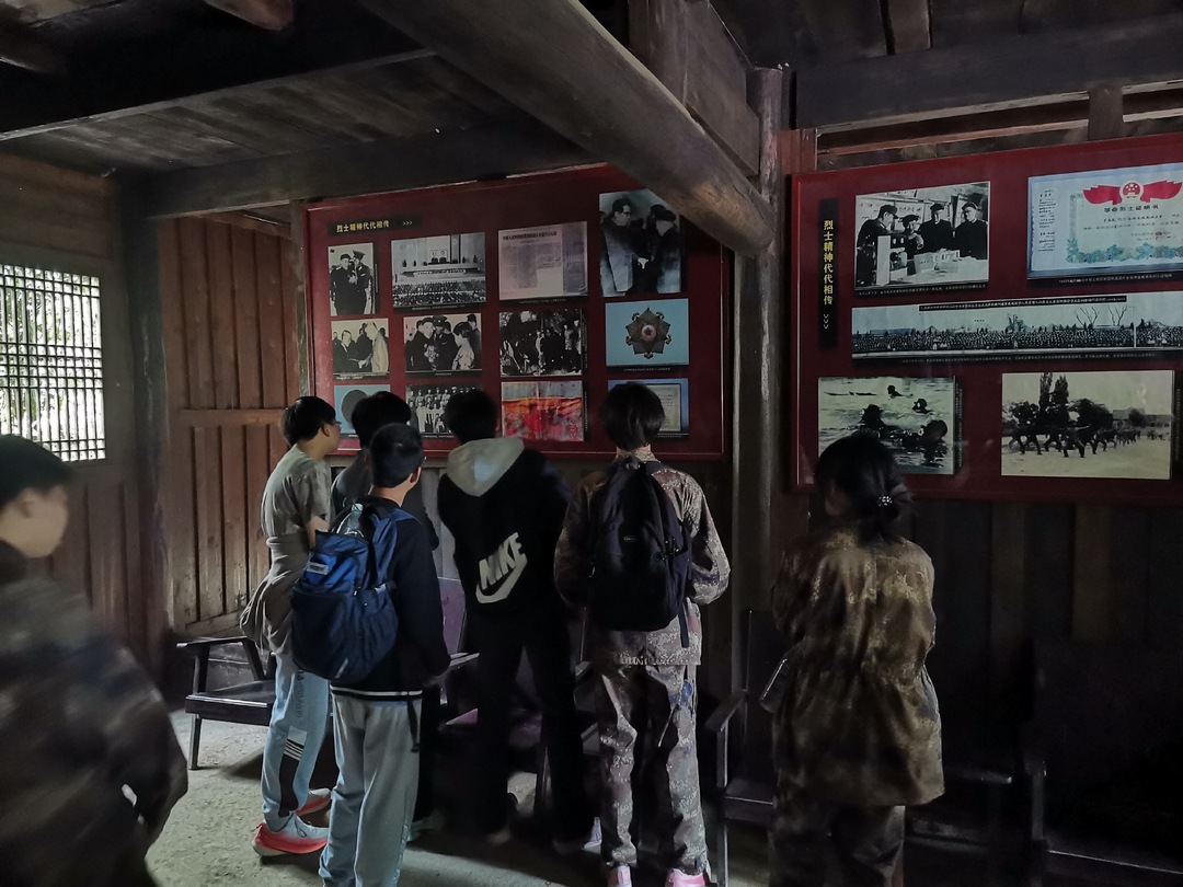 抵达罗盛教烈士故居后,全体学生分班级在故居前坪庄严宣誓,随后有序参观。在讲解中,同学们深入了解了罗盛教烈士在国际主义精神感召下舍己救人的英勇事迹,深受触动。