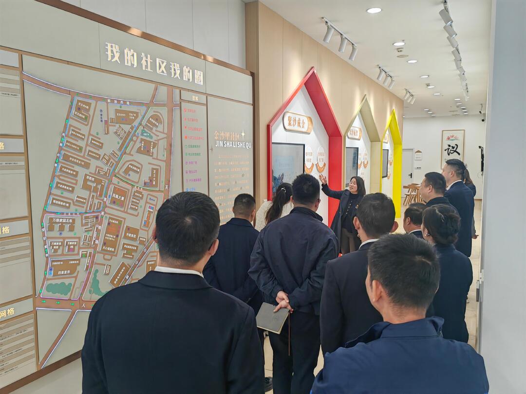 下午2时,金沙里社区党委书记龚雪倩带队参观社区党群服务中心,600 平方米的服务阵地里,一站式服务大厅的 “城市会客厅”、多功能会议室的“红色课堂”、居民议事厅的“自治平台”、慈善超市的“爱心枢纽”、舞蹈活动室的“活力空间” 及儿童之家的“成长乐园”依次呈现,让大家直观感受 “先锋同心、聚沙成金” 的服务理念与社区在楼宇党建、网格化治理等方面的扎实成效。