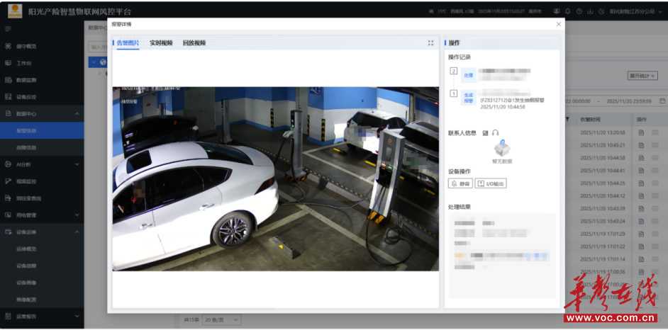 针对酒店设备间、地下控制室、电动汽车充电区、地下停车场四大高风险区域,阳光财险以技术赋能破解场景安全难题:在设备间燃气锅炉区域,部署工业级可燃气体报警装置,监控燃气泄漏,规避爆炸事故;在地下控制室,安装高灵敏度水浸检测报警装置,采用接触式传感技术精准监测水淹情况,避免酒店电力通信系统中断和财产损失;在电动汽车充电区域,安装专用火灾监控摄像设备,依托红外热成像与可见光双探测技术,精准识别电池热失控初期的温度异常与烟雾迹象,提前预警和处置风险;在地下停车场公共区域,部署具备人体行为分析、车牌识别、异常滞留监测功能的智能安防摄像系统,可自动识别各类异常行为并推送预警画面,同时支持24小时视频回溯,为纠纷处理与财物查找提供支撑。