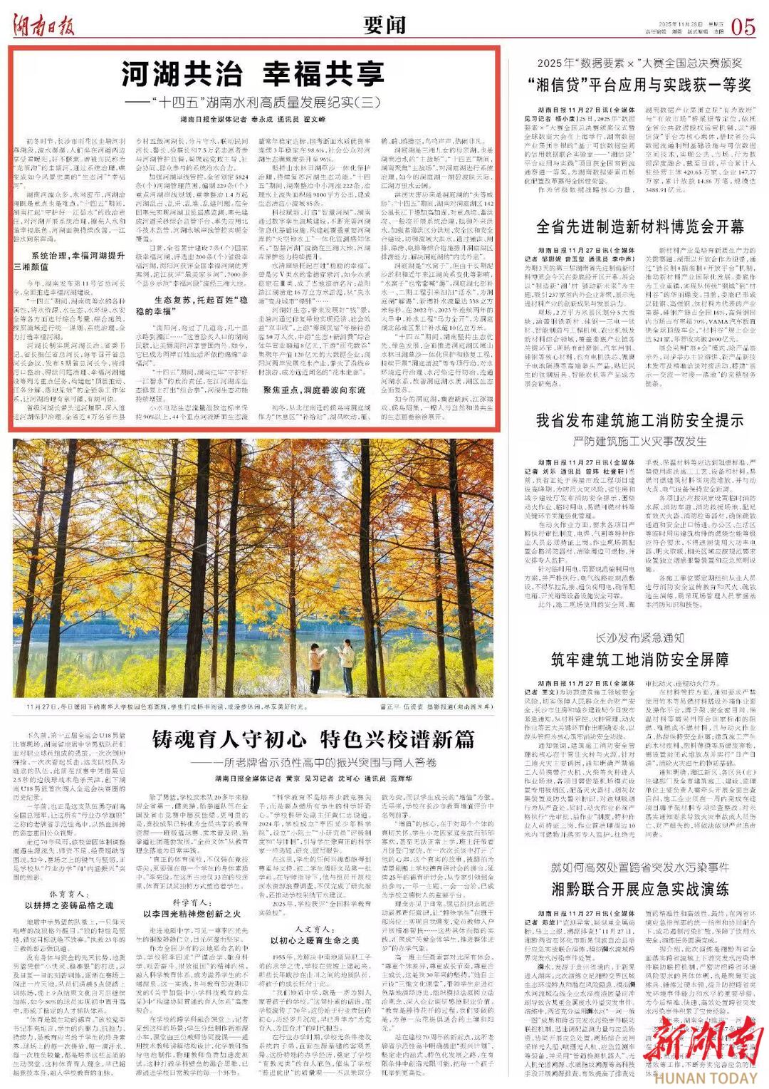 科技赋能,打造“智慧河湖”。湖南通过数字孪生流域建设,不断完善河湖信息化基础设施,构建起覆盖重要河湖库的“天空地水工”一体化监测感知体系,“智慧河湖”流淌在三湘大地,河湖库保护能力持续提升。