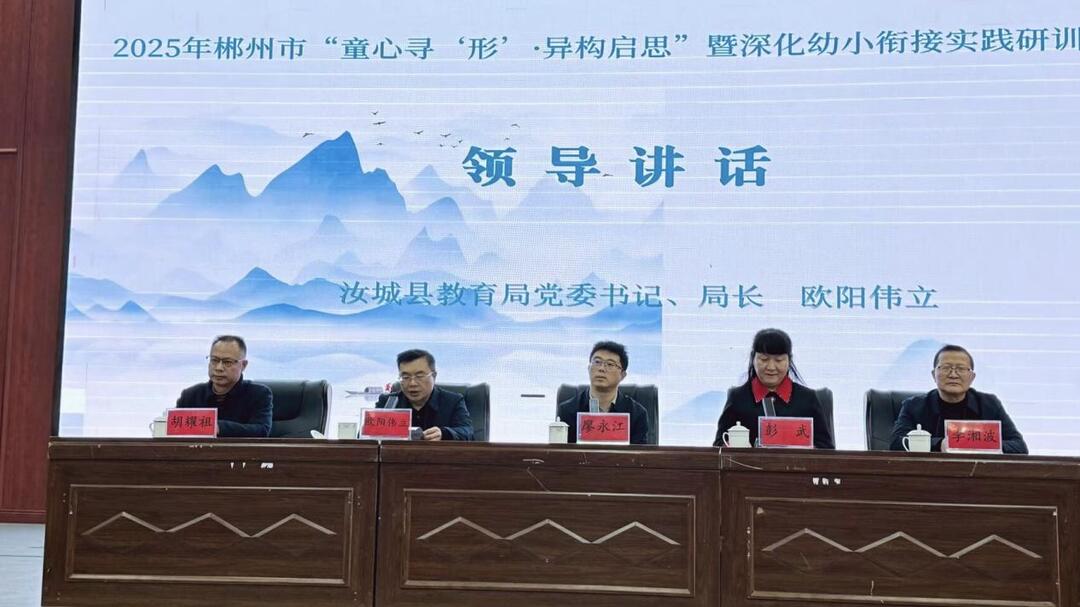 华声在线讯(通讯员:罗小燕 朱慧婷)2025年11月27日,郴州市“童心寻‘形’·异构启思”暨深化幼小衔接实践研修活动在汝城县职业中学报告厅举行,由郴州市教育科学研究院主办、汝城县教育局承办,汝城县机关第二幼儿园、汝城县第一完全小学协办,郴州市各县市区的学前教育专兼职教研员、园长、骨干教师以及汝城县各中小学校长、园长、骨干教师和部分家长代表300余人参加了此次活动。
