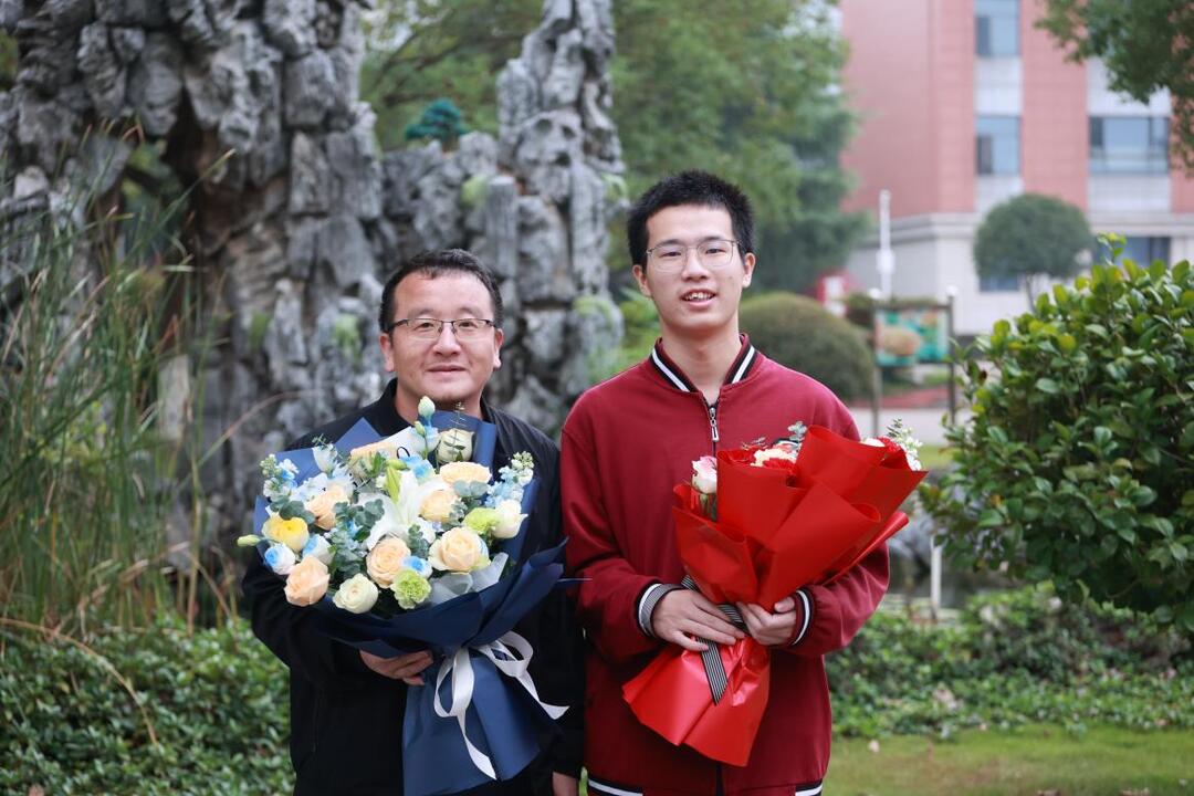 “新竹高于旧竹枝,全凭老干为扶持。”肖瑞鑫同学的优异成绩,离不开数学竞赛教练谢伦驾老师的系统指导与全程陪伴,更离不开学校“卓实”精神引领下的竞赛培养体系。作为县域高中的标杆,学校始终坚持将学科竞赛与日常教学深度融合,克服教练紧缺、资源有限等困难,构建了"教练引领、团队协作、个性培养"的特色模式,既涵养学子们家国情怀,更锤炼科学素养。竞赛团队的老师们深耕教研、潜心钻研,放弃休息时间编写校本资料、打磨辅导方案;学校搭建数学交流平台,让学子们得以在有限条件下碰撞思想、精进技艺,用匠心与坚守浇灌出成长之花。
