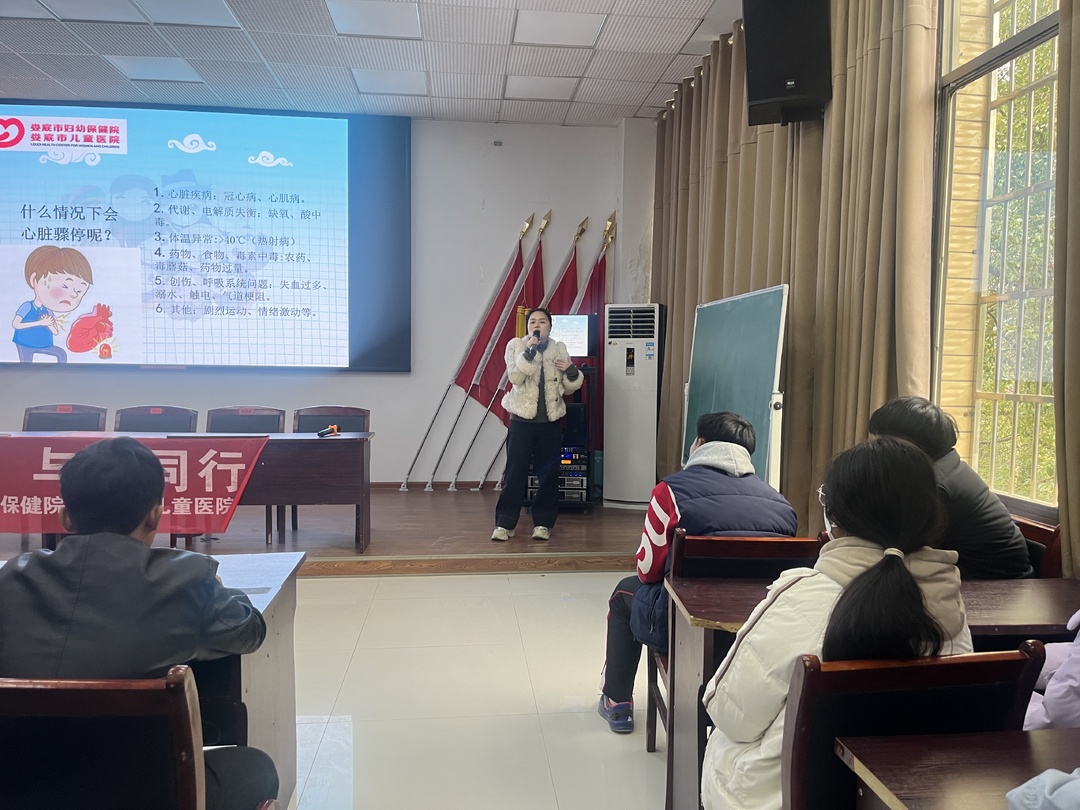 首场活动结束后,娄底市妇幼保健院的讲师继续开展急救知识讲座和防性侵教育。急救讲座重点讲解心肺复苏技能,讲师借助示意图拆解步骤,现场示范按压动作,让同学们快速掌握操作要领;防性侵教育中,老师清晰界定隐私部位等关键概念,教会学生识别风险、拒绝不当接触和有效求助,强化自我保护意识。