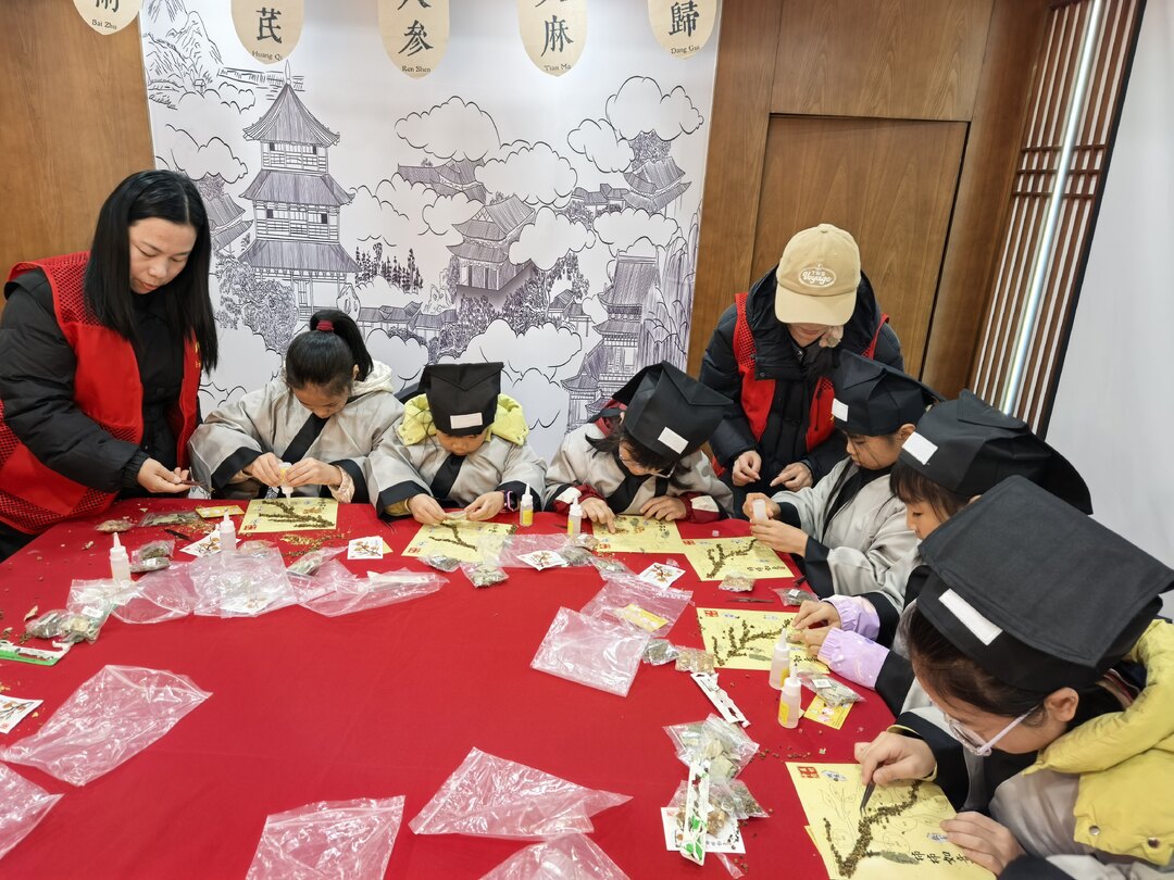 四是非遗手工DIY,定格文化记忆。亲子协作完成中草药画创作,在裁剪、粘贴、搭配的过程中,既拉近亲子情感距离,更让孩子们亲手打造专属“中医药文化纪念品”,让文化体验有温度、有留存;
