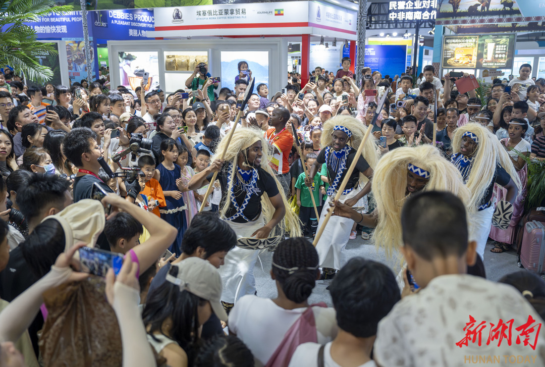 6月14日,长沙国际会展中心,工作人员在卢旺达展台为观众表演舞蹈。湖南日报全媒体记者 辜鹏博 摄