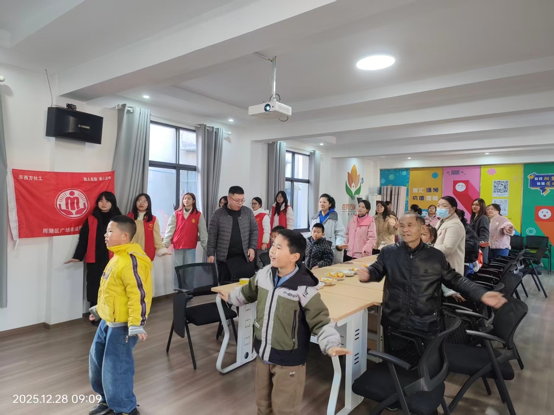 活动伊始,社工以热情洋溢的开场,引导所有家庭迅速融入“一家人”的温馨氛围中。随着《福气要来到》手势舞的音乐响起,大小朋友们齐齐舞动,用活泼的节奏点燃现场气氛,也舞出了对新年的第一份期盼。