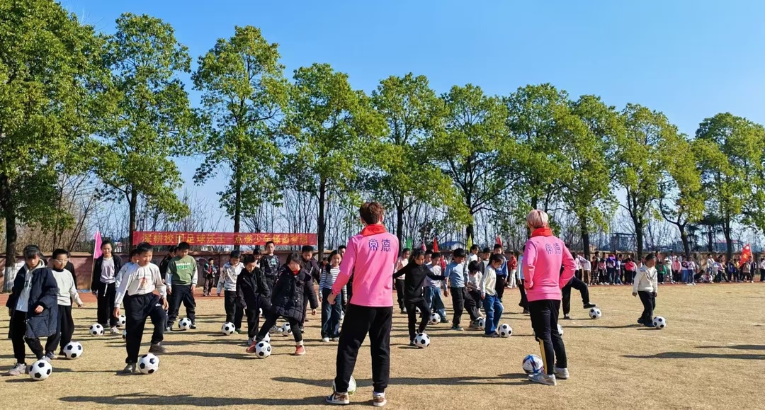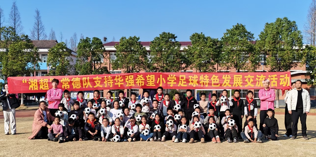 华声在线1月9日讯(通讯员 刘银)冬日暖阳洒满校园,欢呼声此起彼伏。1月8日下午,“湘超”联赛常德队球员李嘉睿、陈嘉星等球员代表来安乡进行首次公益支教,第一站就走进了安乡县三星咀中学(华强希望小学),开展足球交流指导活动,为乡村孩子们送上了一场充满热爱与力量的足球盛宴。