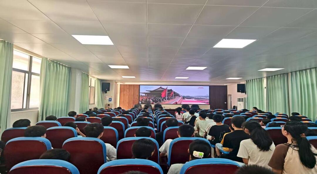 上午9时,娄星区增桥中学全体师生实时观看了阅兵式,学生代表表示:"作为新时代青年,我们定当不忘国耻,奋发图强,以青春之志建设强大祖国,共鉴盛世荣光。"