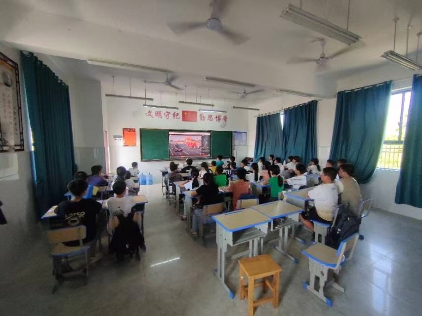莲花学校全校师生共观纪念中国人民抗日战争暨世界反法西斯战争胜利80周年大会实况直播