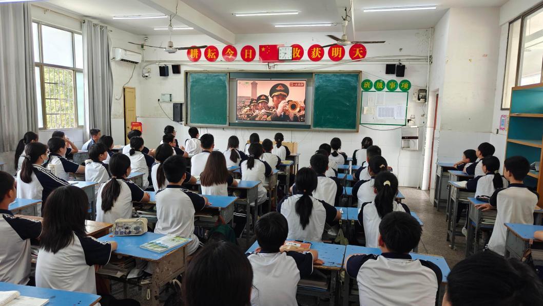 娄底四中组织师生集中收看纪念中国人民抗日战争暨世界反法西斯战争胜利80周年大会实况直播