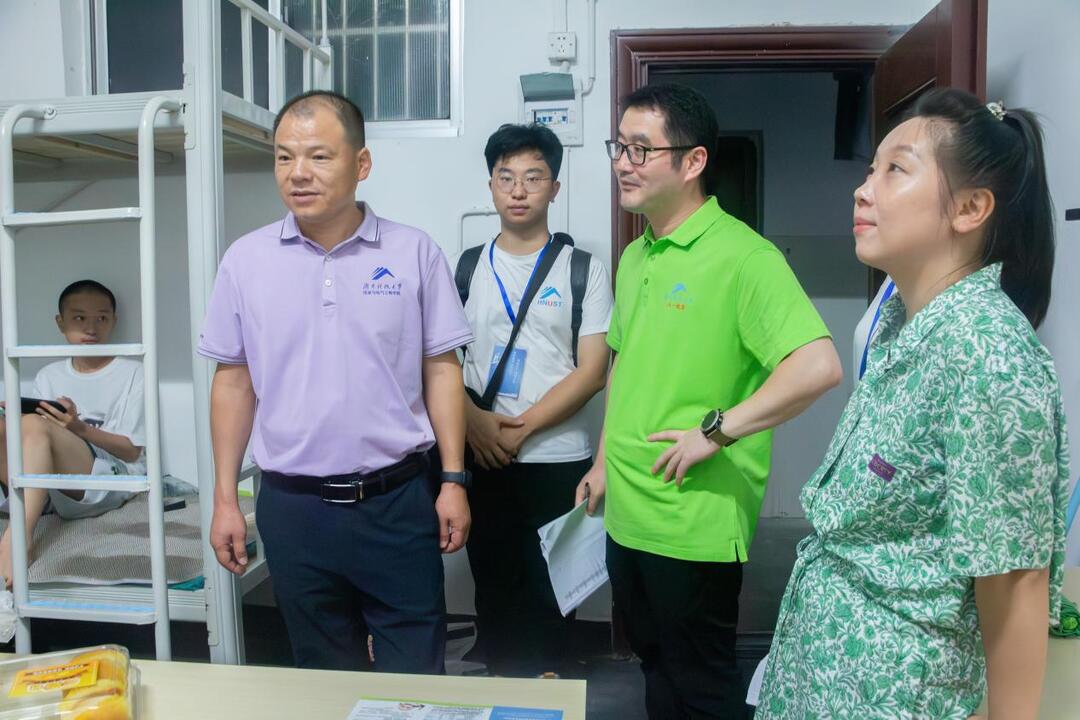 江献书逐一走进新生宿舍,与同学们亲切交谈,详细了解他们的入住的情况、生活适应状况以及对新环境的初步感受。每到一处,老师们都耐心询问同学们是否遇到困难,认真听取大家的意见建议,并现场协调解决了部分宿舍设施问题。
