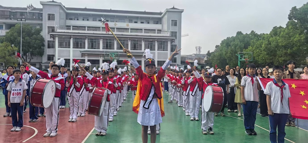 开幕式在庄严而热烈的氛围中有序推进。伴随着激昂高亢的《运动员进行曲》,入场仪式正式开始。首先登场的是英姿飒爽的国旗队与队旗队,队员们身着整齐服装,迈着铿锵有力的步伐,眼神坚定,神采飞扬,每一步都彰显着河西学子对祖国的深切热爱与崇高敬意,瞬间点燃全场师生的爱国情怀。紧随其后的鼓号队同样气势十足,队员们精神抖擞,嘹亮的号声与激越的鼓点交织回荡在校园上空,为开幕式奏响了充满奋进力量的序曲,引得现场掌声不断。