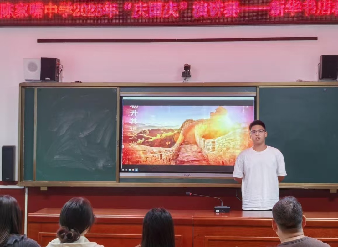 华声在线9月29日讯(通讯员 吴思沅)为热烈庆祝中华人民共和国成立76周年,进一步激发全校师生的爱国热情,厚植家国情怀,近日,安乡县陈家嘴中学联合新华书店在学校举办以“我爱你,祖国 ”为核心的庆国庆演讲比赛。各年级师生代表齐聚现场,共同聆听这场充满热血与深情的爱国赞歌。
