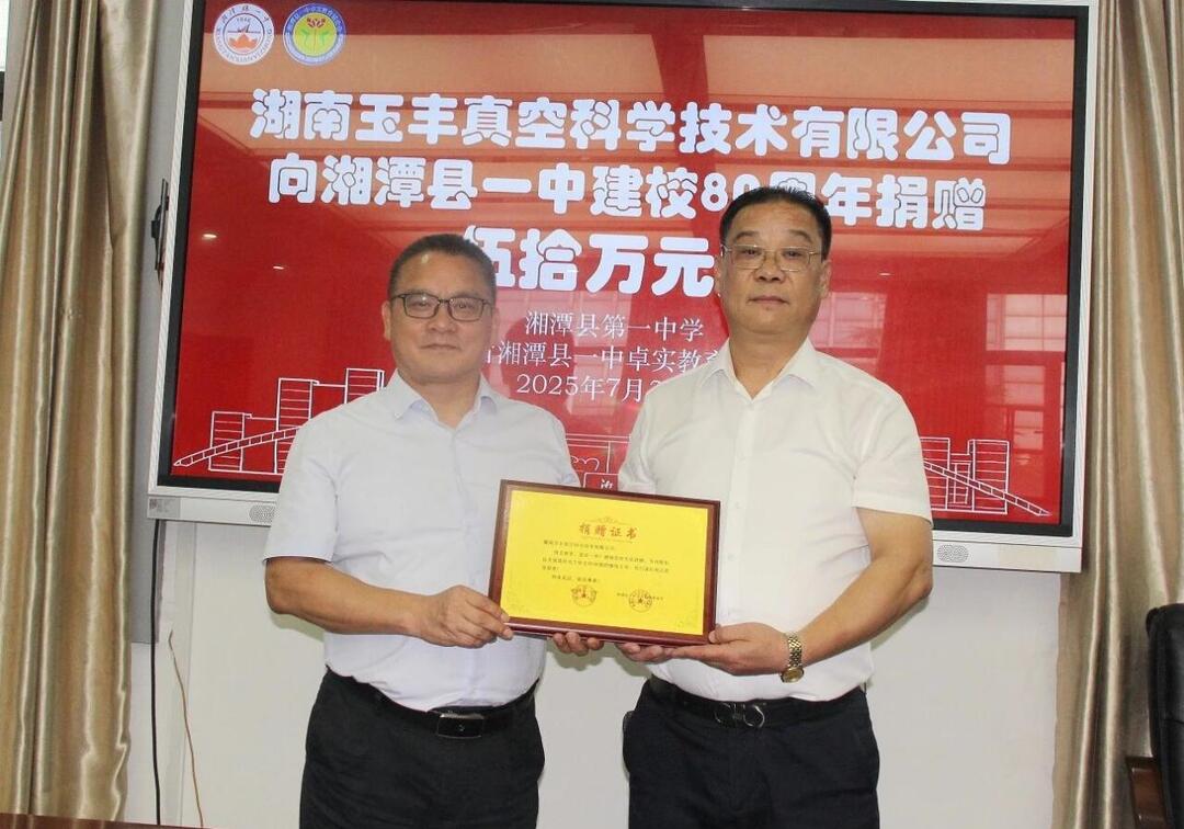 湖南玉丰真空科学技术有限公司向湘潭县一中捐赠50万元