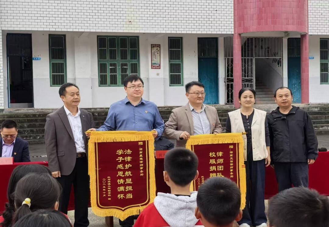 为感谢捐赠方善举,古丈县司法局代表学校向见田律师事务所赠予“爱心助学”荣誉锦旗。考虑到未成年人成长需要法治护航,律所代表还为同学们带来了一堂趣味互动法治课,将法治知识融入生动讲解。