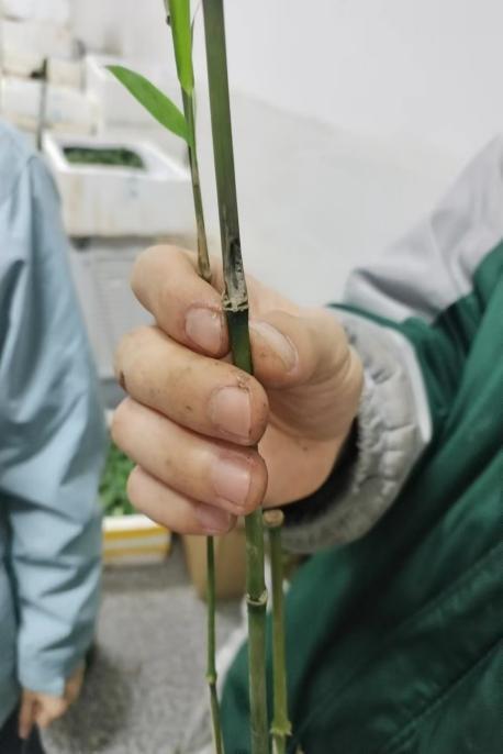 刺毛——天然抗虫铠甲。茎秆"疣基"小刺密度越高,抗虫能力越强,这成为筛选母竹的核心指标。
