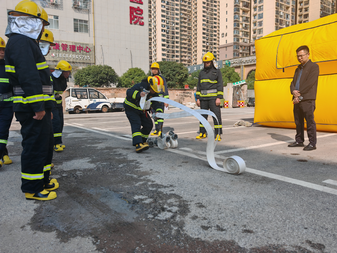消防水带操作区更是展现了团队协作的精彩场面。队员们认真观摩教官示范,对水带握持、接口卡扣等细节反复请教,确保动作规范。在实操中,从水带的迅速铺开到接口的紧密连接,再到水枪的精准定位与有效控制,整个流程一气呵成,展现了团队协作的显著成效与扎实的技能基础。