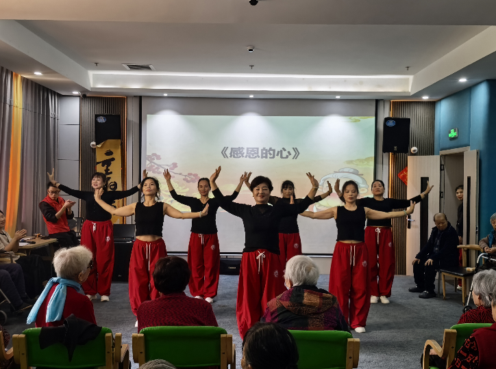 随后,联丰村文艺团队献上了一场精彩纷呈的慰问演出。开场舞蹈《中国家园》以恢宏大气的舞姿抒发了深沉的家国情怀;动感活力的《快乐时光》展现了新时代农村的蓬勃朝气;独唱《我的父亲母亲》深情款款,勾起无数回忆;诗朗诵《变老的时候》温情而真挚,表达了对生命历程的尊重与共情。此外,时尚走秀、形体舞蹈、古典舞等节目接连登场,充分展现了联丰村村民良好的精神风貌与艺术素养。演出在全场齐唱《感恩的心》中达到高潮,温暖的歌声传递出对老人们的深切敬意与美好祝愿。
