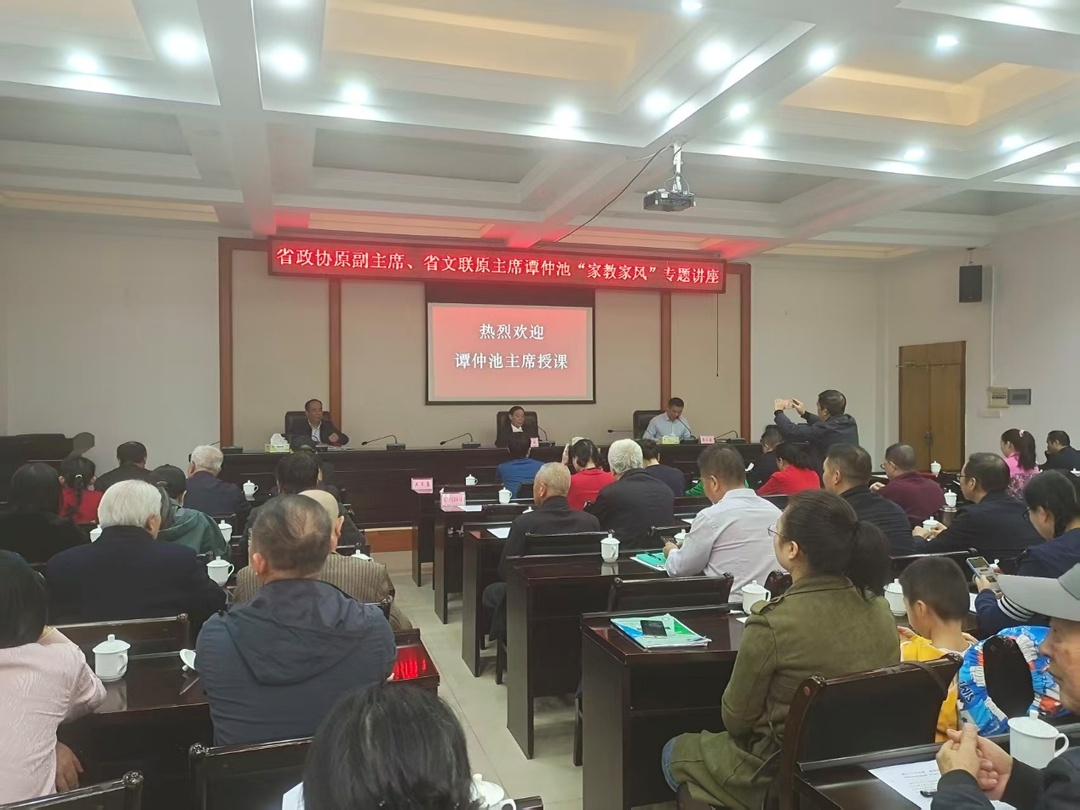 活动邀请浏阳籍老领导、湖南省政协原副主席、省文联原主席谭仲池担任主讲人。作为深耕家风家教研究多年的学者,谭仲池从家庭、家教、家风三个维度展开阐释。讲座中,老同志们端坐凝神,手中的钢笔在笔记本上飞快记录核心观点,遇到共鸣之处,纷纷点头颔首,偶尔与身旁同伴轻声交流感悟;当谭仲池分享自身陪读经历、反思教育急功近利现象时,会场格外安静,大家专注倾听,眼中满是认同与思索,不少老干部还特意用红笔圈划重点,生怕错过宝贵见解。两个小时的讲座节奏紧凑、干货满满,现场不时响起阵阵发自内心的掌声。