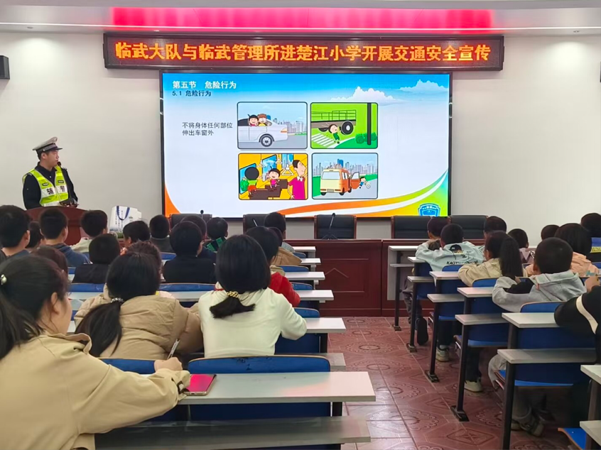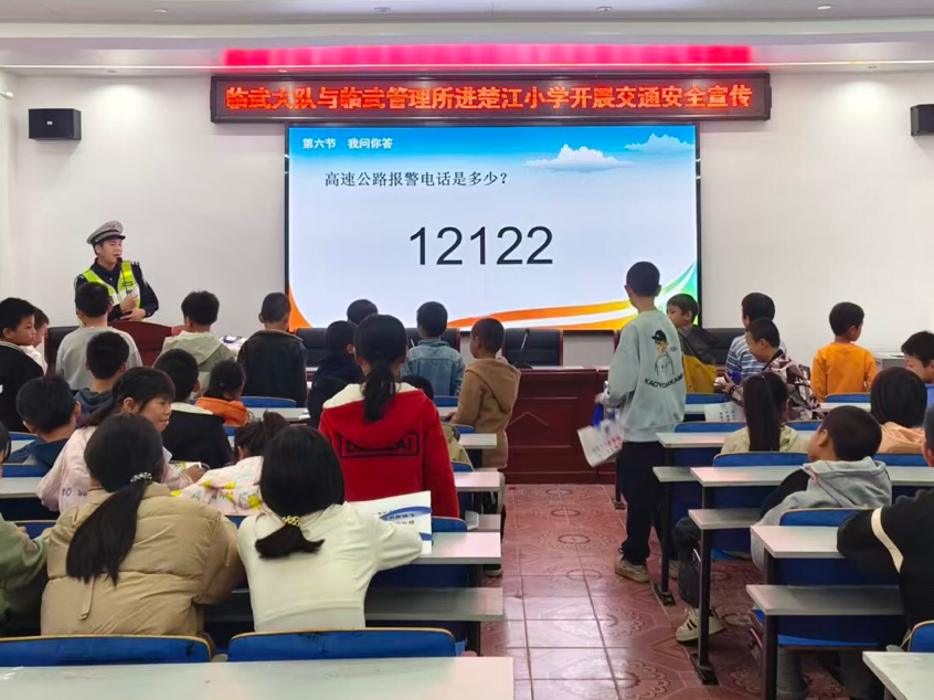 华声在线10月31日讯(通讯员 黄湘云 贺周柏)“身体不能伸出车窗、应急车道绝不能乱闯……”10月30日下午,楚江小学多媒体教室内,临武交警大队与临武管理所的民警正对着一群特殊的“小听众”——三至六年级各班选出的调皮学生代表,开展交通安全专题培训。