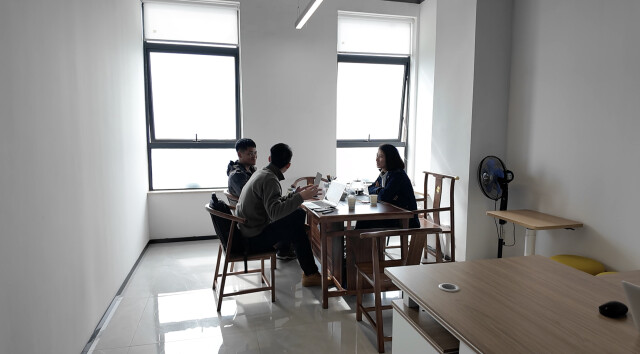 (三一众创公司内,导师给予创业者指导。 范思璇摄)
