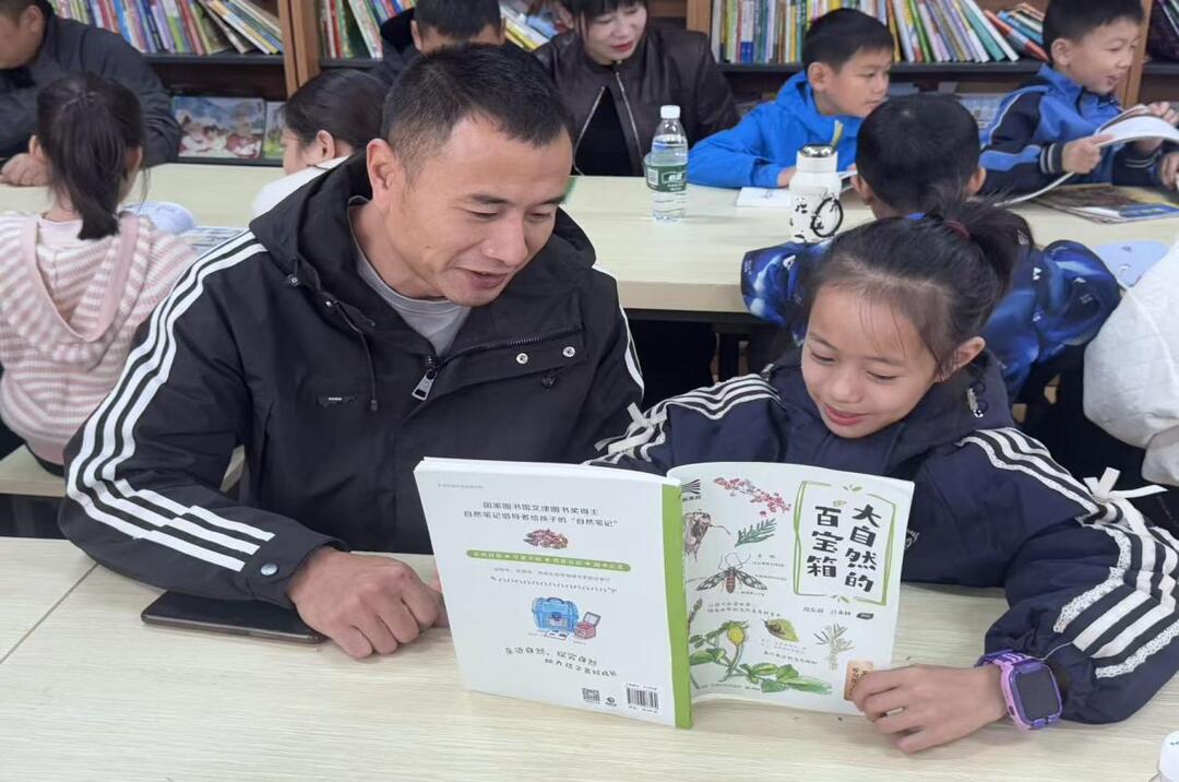 活动伊始,沿溪完小主持人阐述亲子共读对成长的意义——“把陪伴这份最好的礼物,藏进文字里、融进时光里”。在“亲子读书会”环节,工作人员结合新华书店推荐的书籍清单,从孩子认知特点与美育需求出发,分享书籍推荐与选择技巧;亲子家庭手捧书籍静坐阅读,新华书店提供的绘本、儿童文学、科普读物等品类丰富,满足了不同家庭的阅读偏好,现场只剩翻页声与偶尔的轻声交流;阅读结束后,多名学生与家长主动举手,分享书中故事与阅读感悟,有孩子讲述童话里的勇敢主角,有家长提及散文传递的生活哲理;全体参与者共同开展诵读表演,琅琅书声回荡在活动现场。