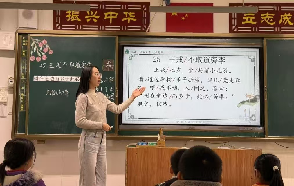12月18日的语文课堂同样精彩:刘幸老师在《古人谈读书》中,以诵读结合解析的方式,带五年级学生品味古人读书智慧;刘婷老师则以《王戎不取道旁李》这篇课文为载体,以读为线,通过品读王戎的人物品质,培养四年级学生的思辨能力。