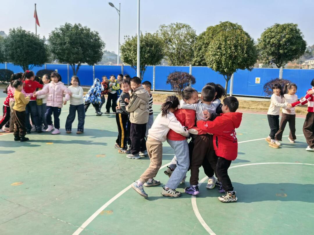 活动围绕三个层层递进的游戏环节展开。“趣味笑脸蹲”考验学生的反应与默契,孩子们在口号与动作的接力中感受集体节奏;“抱团取暖”环节则鼓励学生主动邀请、互相包容,在数字抱团中体会“一个都不能少”的团队温暖;最后的“龙卷风”冲刺游戏,更强调步调一致与协作精神,孩子们在奔跑与接力中领悟合作的真谛。整场活动气氛活跃,孩子们全情投入,笑声与鼓励声不断响起。