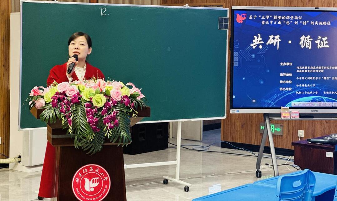 华声在线12月31日讯(通讯员 李宗兴 武颖星)12月26日,砂子塘集美小学举办“朵坊”校本教研开放活动。雨花区教育局基础教育和民办幼教事务部部长陈莹;雨花区教育科学研究所书记欧阳慧美;雨花区教育科学研究所副所长范俊胜;雨花区“生命教育·问题化学习”联盟副秘书长饶敏;问题化学习研究所教学转化特约首席专家、长塘里和风小学副校长杨静,以及多所兄弟学校的校长与教师代表现场参加并面向全国同步线上直播。