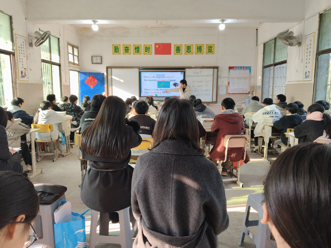 英语学科《What are the shirts made of?》的教学展示同样亮点纷呈。光明中心学校龚晓勇老师立足乡村学情,以流畅的课堂节奏、细致的讲解,层层递进落实知识点,在耐心引导中彰显教学匠心,用朴实高效的课堂帮助学生夯实英语基础;东风中学邓祖河老师则以热情洋溢的授课风格带动全场氛围,以丰富的互动环节和情境活动为依托,在轻松愉悦的氛围中充分激发学生学习兴趣,取得显著教学成效。