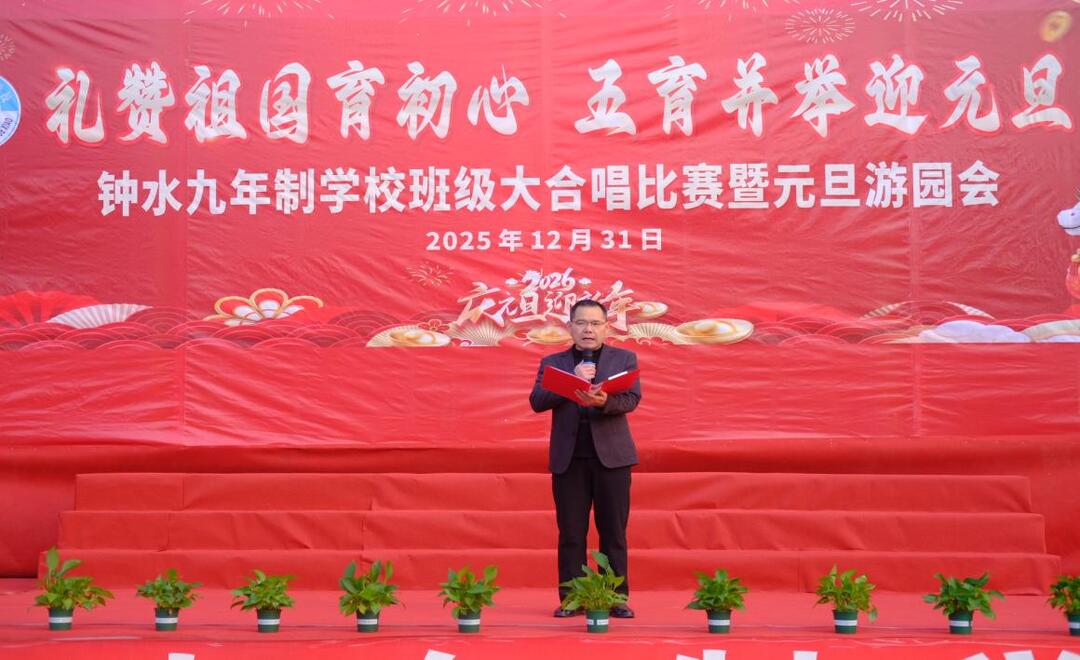 此次合唱比赛,不仅是一场视听盛宴,更是一堂生动的爱国主义教育课和美育实践课。它既丰富了校园文化生活,增强了班级凝聚力,又让学生在歌声中感悟家国情怀,在实践中践行“五育并举”理念。钟水九年制学校党支部书记兼校长李华锋表示:“本次大合唱比赛是学校‘五育并举’教育理念的生动实践,更是同学们爱国情怀与青春风采的集中展现。歌声里有信仰,旋律中有力量,看到同学们在舞台上的自信与担当,我们深感欣慰。教育的本质是唤醒心灵、滋养成长。新的一年,学校将继续以立德树人为根本,以素质教育为核心,为同学们搭建更多展示与提升自我的平台,让每一位学子都能在钟水校园收获知识、涵养品格、强健体魄、陶冶情操。愿全体师生带着这份爱国情、团结心、奋进志,在新的一年里携手同行,不负时光、不负韶华,让青春在为祖国、为人民的奉献中焕发出绚丽光彩!”新的一年,钟水九年制学校将继续深耕育人沃土,为培养德智体美劳全面发展的社会主义建设者和接班人不懈奋斗。