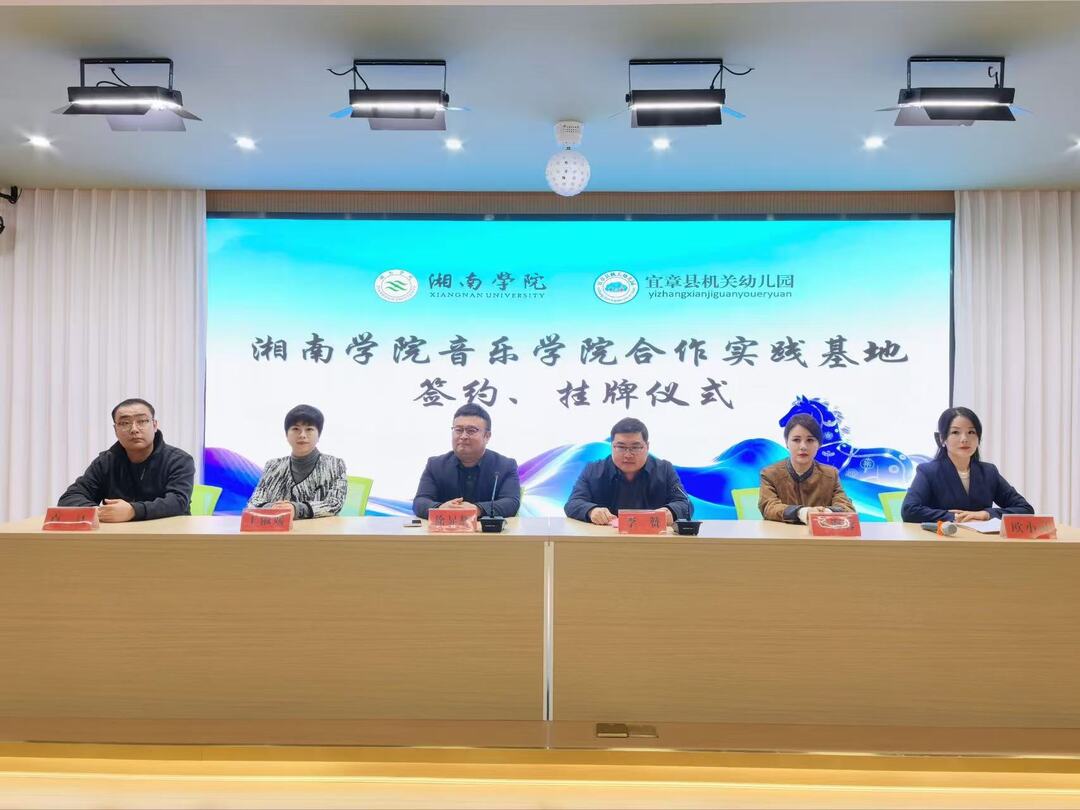 在全体嘉宾的共同见证下,双方代表郑重签署了《共建教育实践基地合作协议书》,并一同为“湘南学院音乐学院教育实践基地”揭牌。这一时刻标志着双方的合作正式步入实质性推进阶段。