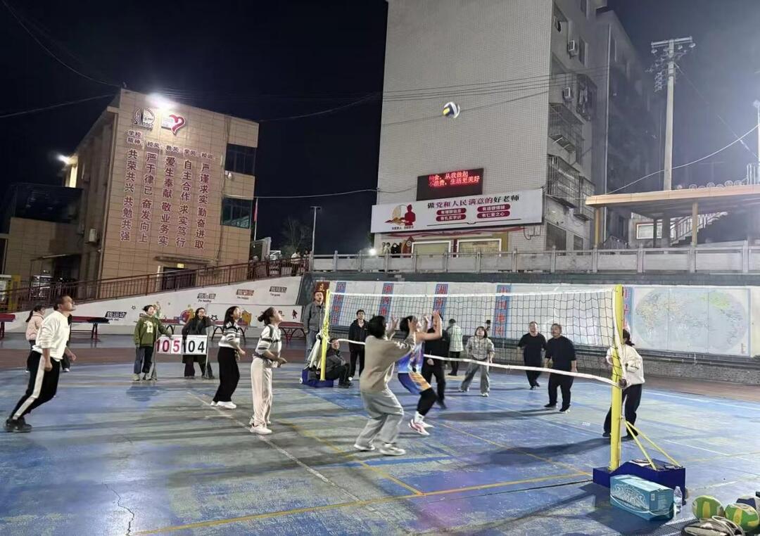气排球赛场同样精彩纷呈,每日下午6点,语文组、数学组、综合组、领导班子组、村小组五支队伍轮番对决。比赛采用21分制三局两胜规则,队员们身姿轻盈、配合默契,时而轻巧吊球、时而大力扣杀,时而精准拦网、时而灵活救球,每一次精彩攻防都赢得全场掌声。各队领队悉心组织,队员们秉持“娱乐第一,比赛第二”的原则,在切磋中增进友谊,在竞技中收获快乐。赛事严格依规排名,最终评选出冠亚军,用实力彰显了教职工的活力与担当。