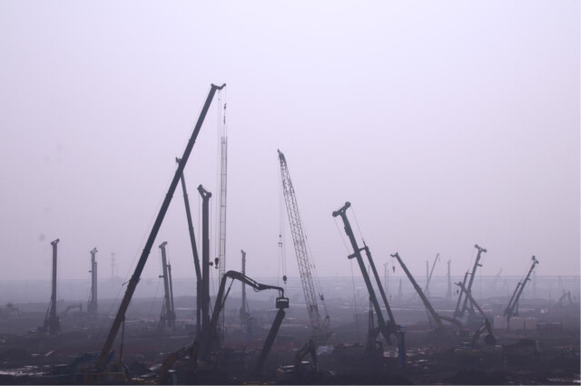 在历时28天的桩基施工过程中,项目团队克服了场地狭小、地质复杂及冬季恶劣天气等多重挑战。施工区域占地面积仅约15亩,东西向最宽处不足百米,现场5台大型旋挖钻机及多套配套设备同步作业。项目地质条件也较为复杂,存在深层圆砾地层且含水量较高,对桩基成孔施工有较大阻碍,项目技术团队联合行业专家与设计单位,在试桩基础上优化工艺方案,确保工程桩质量符合标准。