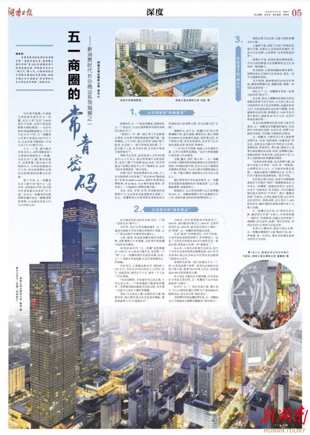 数十年来,五一商圈是长沙人眼中的“城中心”;近年来,这里换代升级,成为是国内外游客慕名而来的“打卡地”。长沙五一商圈如何在新消费浪潮中绘出一幅幅消费新图景,让远道而来的人们为之怦然心动?