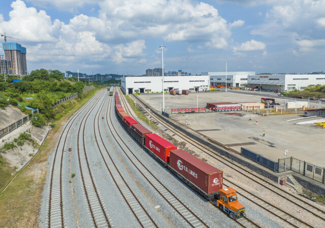 株洲中车物流基地,一列满载货物的湘粤非铁海联运班列整装待发。 湖南日报全媒体记者 李健 摄)